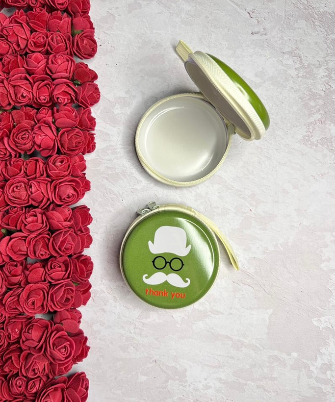 قوطی گرد فلزی زیپی دکوری، با قطر ۷ سانت، مناسب برای خورده ریزهای داخل کیف مثل هندزفری پول خرد و ....