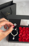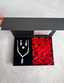 توضیح : این ست زیبا، از انواع جواهرات مجلسی هست. بنابراین برای ماندگاری بیشتر، باید از برخورد مواد ارایشی محافظت شود.