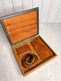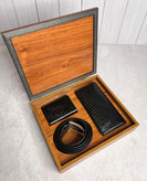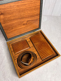 ست هدیه مردانه چرم طبیعی جعبه لاکچری چوبی کادو روز معلم و تولد