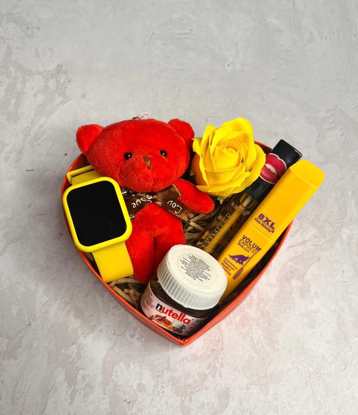 باکس هدیه ولنتاین دخترونه کادو ارایشی و ساعت