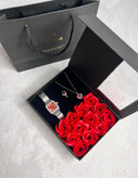 - گردنبند و انگشتر نگین دار با قلب آلبالویی رنگ