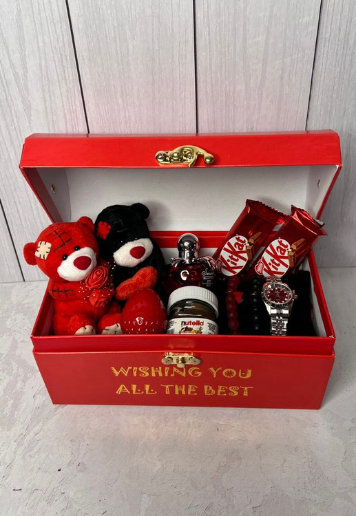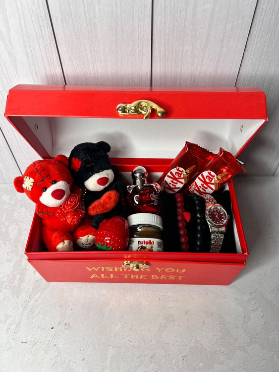 باکس هدیه دخترونه کادو ولنتاین لاکچری قرمز (خرس می تی یو) ۲۲۴