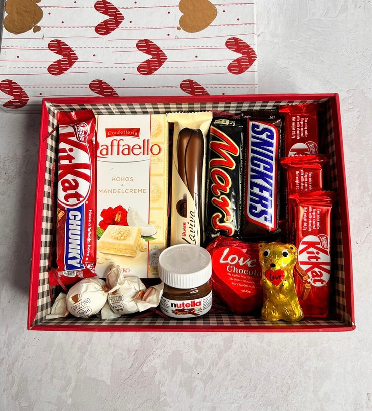 باکس هدیه قلبی پر از شکلات خارجی کیت کت مارس اسنیکرز، کادو ولنتاین عیدی تولد