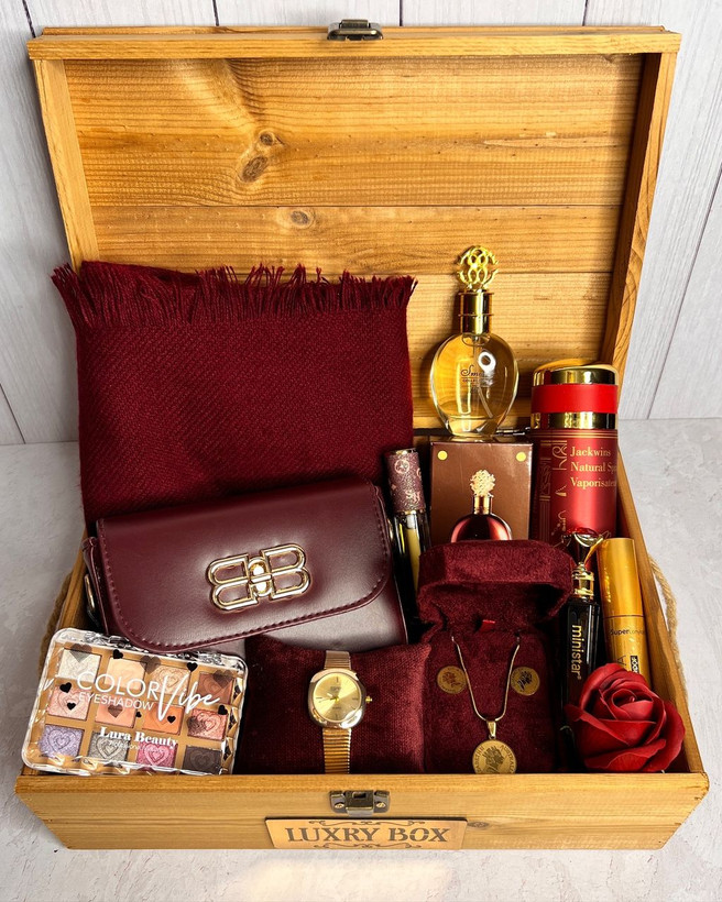 پک کادو زنانه و دخترانه، هدیه مناسب تولد، سالگرد، روز دختر، باکس چوبی ۲۳۵