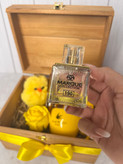 شیک ترین کادو روز دختر، پک هدیه زرد جوجه طلایی، باکس صندوقی چوبی ۲۳۷