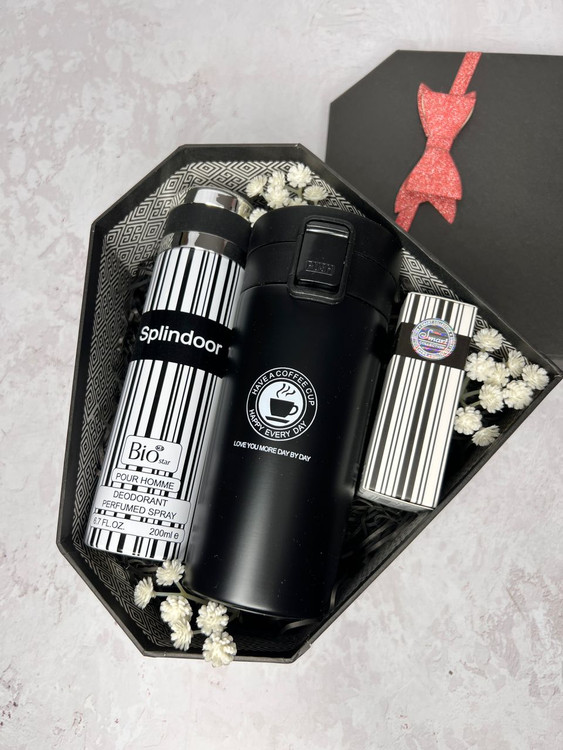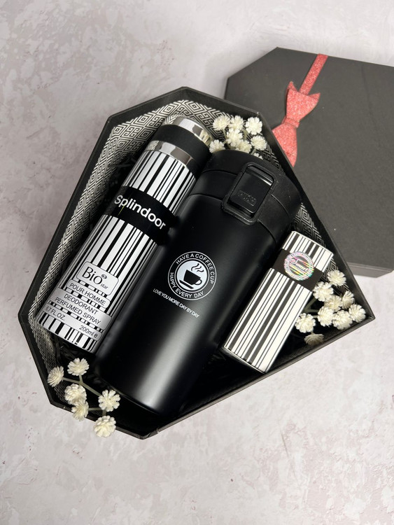 باکس هدیه مشکی مردانه، تراول ماگ و ادکلن هدیه شیک ۲۴۸