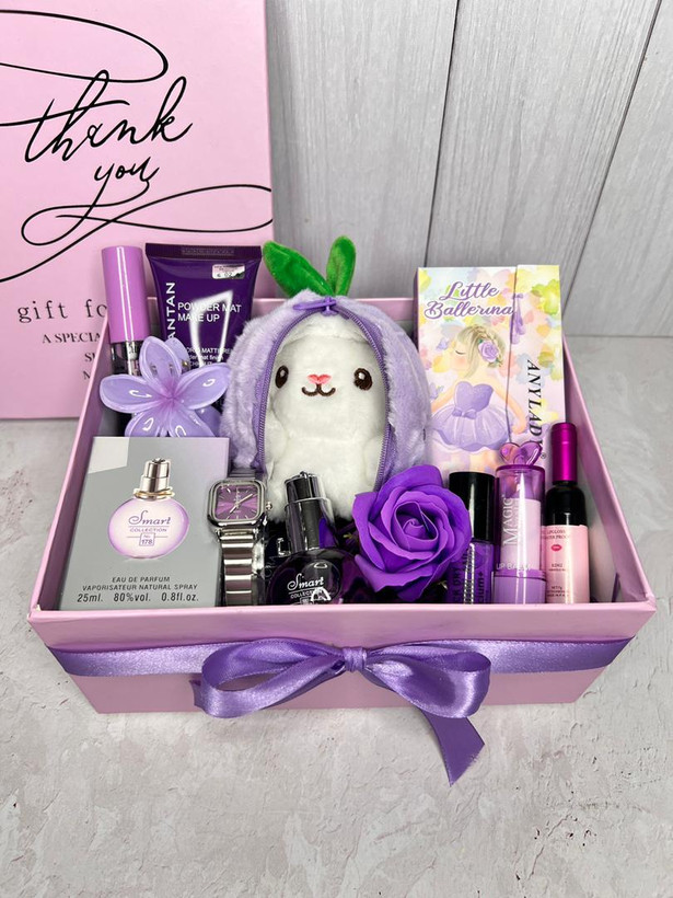 باکس هدیه بنفش و یاسی با اقلام بسیار زیبا و کاربردی