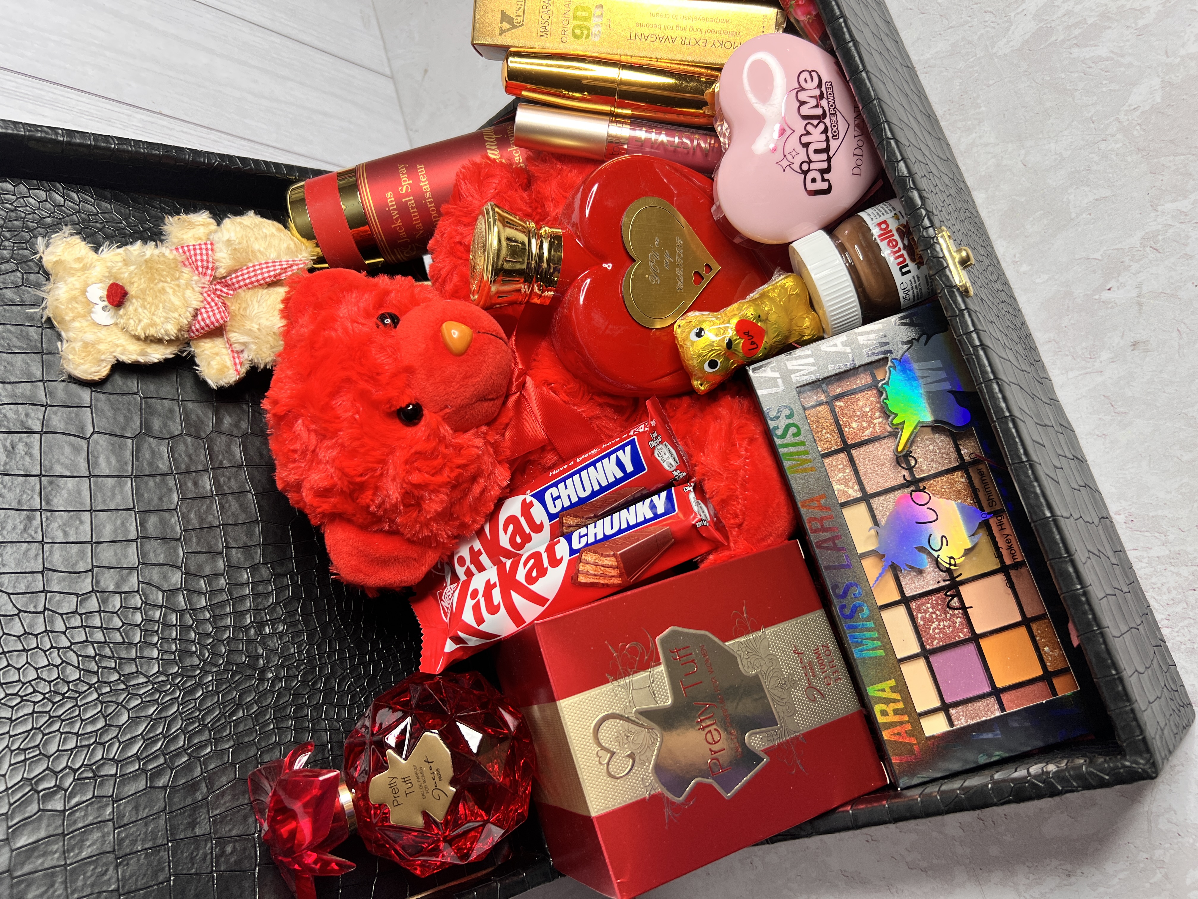 صندوقچه چوبی با روکش چرم مشکی، که اقلام داخلش قرار داده شده، هدیه ای ماندگاره چون بعدها بعنوان محل نگهداری لوازم و یادگاریها میشه استفاده کرد، قیمتش بصورت مجزا بالای یک میلیون تومن هست،