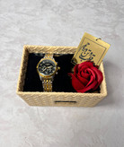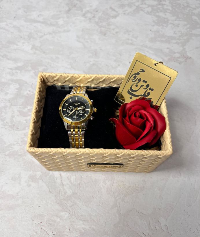 باکس سفارشی شما شامل ساعت سایز زنانه می باشد. عکس دو تا ساعت کنار هم فقط برای نشان دادن نسبت سایز ساعت است.